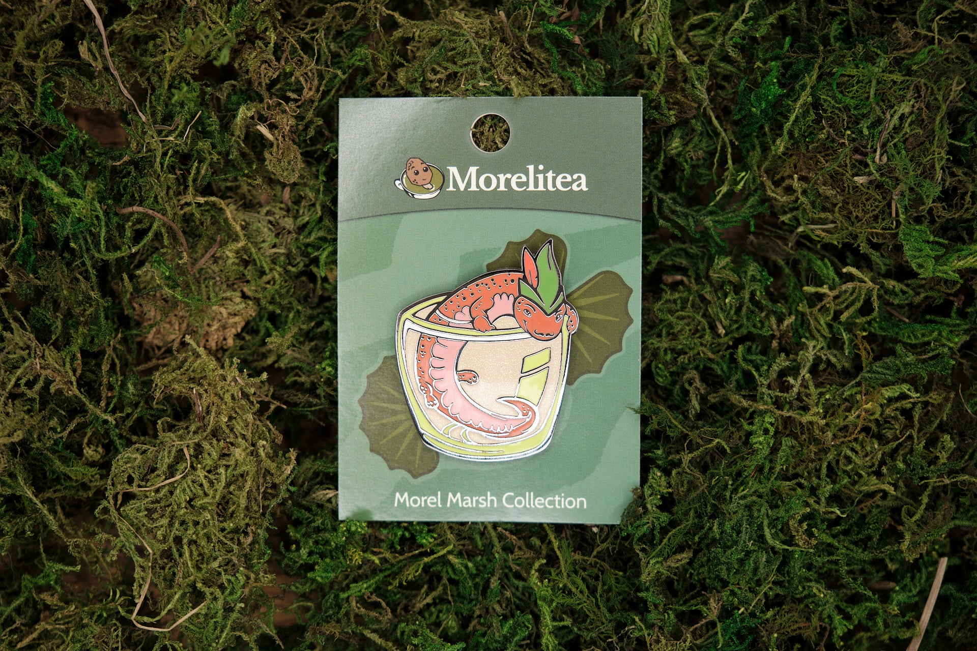 Down on the Saffron Spore docks, there's always a deal to be had, and nobody knows that better than Leroux. This hard enamel pin captures the little salamander right where they're happiest: curled up smug and satisfied in a warm cup, tail wrapped 'round like they own the place, which, come to think of it, they more or less do. Part of the Morel Marsh Collection, this collectible enamel pin is finished in rich, jewel-toned colors that bring the golden warmth of the bayou and the mossy greens of the mangroves right to your lapel, bag, or wherever a charming rogue might choose to set up shop. A perfect fantasy enamel pin for fans of cozy worldbuilding, swamp aesthetics, and characters who always seem to know just a little more than they're letting on, the Leroux pin is the kind of handcrafted accessory that tells a whole story with a single glance and a wink. Add it to your collection, and don't be surprised if it gets to work making friends with everything around it; that's just Leroux's way.